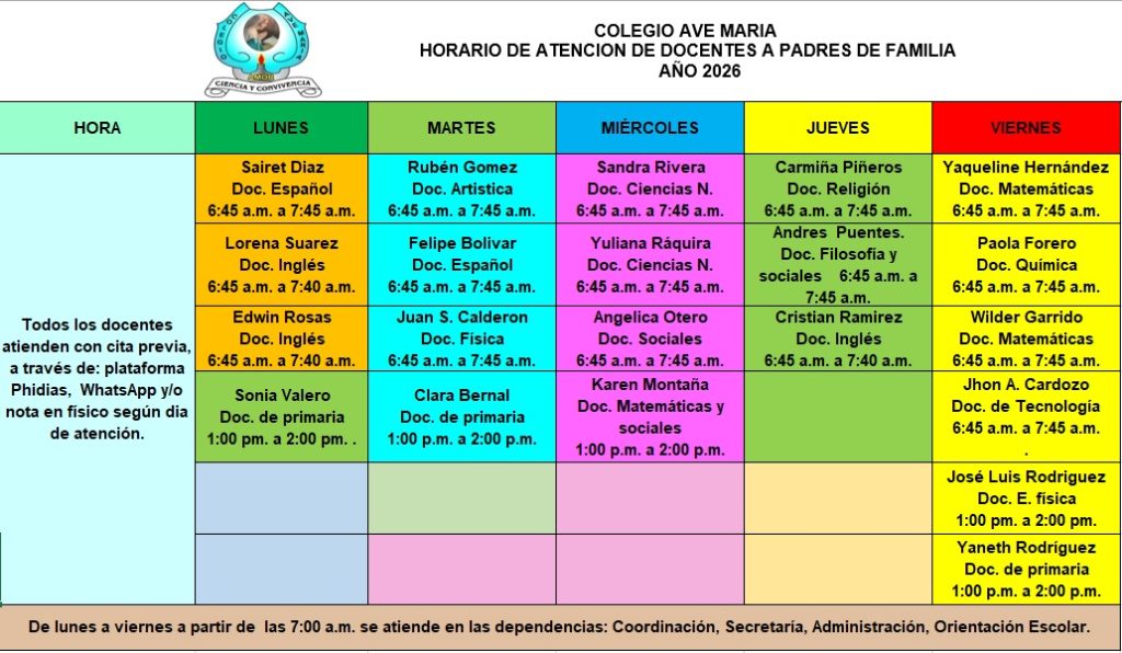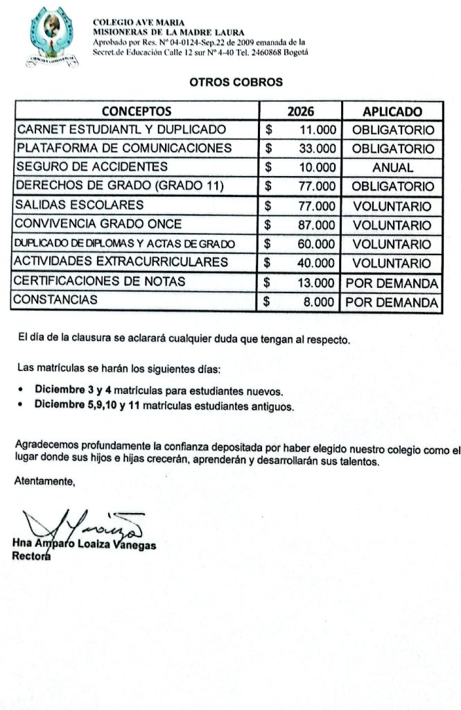 1Enseñanza con amor 3Formamos campeones 2Ciencia y convivencia 3 Estado de cuenta Haz clic aquí Haz clic aquí Campos de formación EspiritualidadSociedad, Ética y Valores, Religión ComunicaciónEspañol, inglés, artes, Educación Física Ciencia y tecnología Biología, Física, Química, Tecnología e Informática. Programa Galería Notcias Admisiones Más información aquí Reproducir vídeo Visítanos Calle 12 sur N 4-40 Horario lunes a viernes 7.30am – 15.30pm Llámanos (601) 2460868